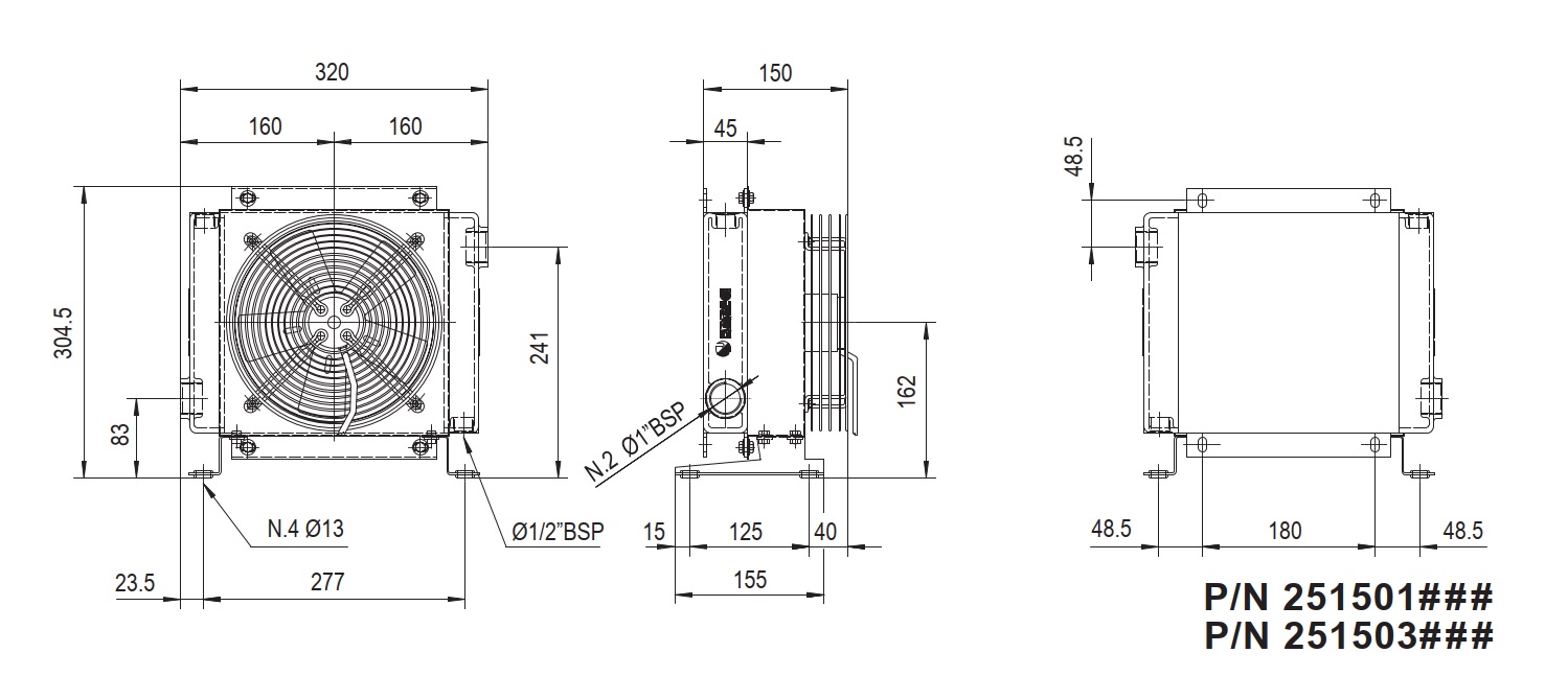 Воздушно-масляный теплообменник 2015K (2515C3001) предназначен для охлаждения гидравлических систем за счёт потока воздуха, проходящего через радиатор при помощи вентилятора с электроприводом. Охлаждающий блок изготовлен из прочного алюминиевого сплава.